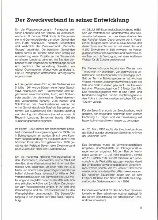 Zum 50. Bestehen der Pfettrach - Gruppe und dem zeitgleichen Abschluß der Sanierungsarbeiten im Wasserspeicher Kreutbartl hat der Zweckverband eine Informationsbroschüre rund um`s Trinkwasser drucken lassen.